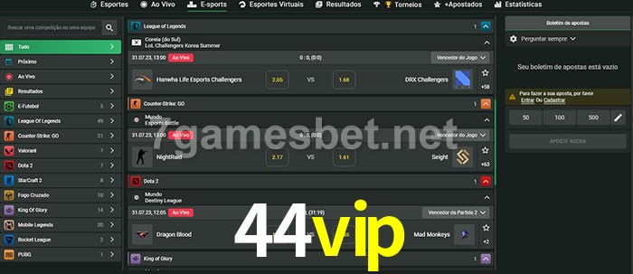 O 44vip oferece uma grande seleção de opções de apostas em e-sports com probabilidades competitivas